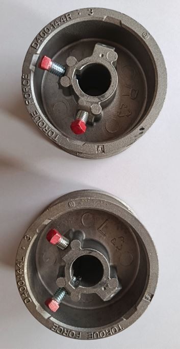 Paire de Tambour DROIT et GAUCHE pour axe de TORSION, code couleur: ROUGE = GAUCHE / DROIT = NOIR .
